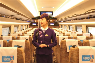 早报2月8日讯 2月7日,一辆特殊的列车从青岛站始发,它就是G206次“共青团号”列车,车上的乘务员是由国铁济南局青岛客运段的青年团员担任。在春运中,他们为旅客提供优质温馨的服务,作为列车长的刘皓在工作中要对8节车厢巡视45次,步数超过3万步,常常占据朋友圈运动步数榜首。