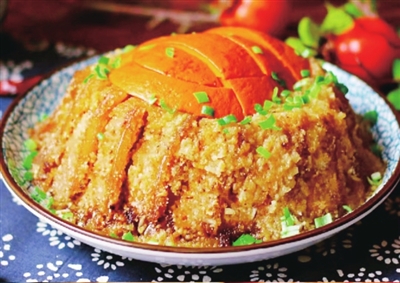 “肉片入碗也有小窍门,米粉肉不要乱叠,要一片片沿着碗的外围码过去,像造塔一样在中间留出空隙,这样水汽能从上至下均匀地接触米粉肉,避免软硬不一,出现疙瘩。”软软糯糯的粉蒸肉一出锅便飘香四溢,用筷子尖轻轻挑起一片肉,小心抬着肉片上的米粉别掉,一股脑地送到嘴里,那种软烂绵密的肉感,滑过舌尖齿缝,在口腔里留下满足的味道。