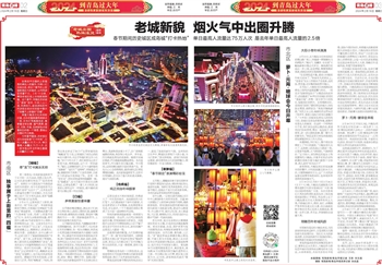 今年春节期间,历史城区成为岛城新春“打卡热地”,日均人流量达55万人次,单日最高人流量达75万人次,这一数字是去年全年单日最高人流量的2.5倍。