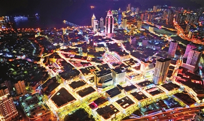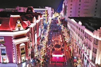 节日的青岛历史城区灯火辉煌,幸福年味与浪漫风情交织。