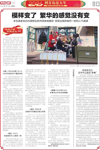 “青岛有自己的《繁花》”“从白天到晚上惊喜连连,老城区太好逛了”“老城区又热闹起来了,真让人欣慰”……这个春节,许多来到老城的人都会不禁感慨,青岛历史老城区的重生不仅吸引了外地游客的眼球,也令不少青岛人倍感惊艳。