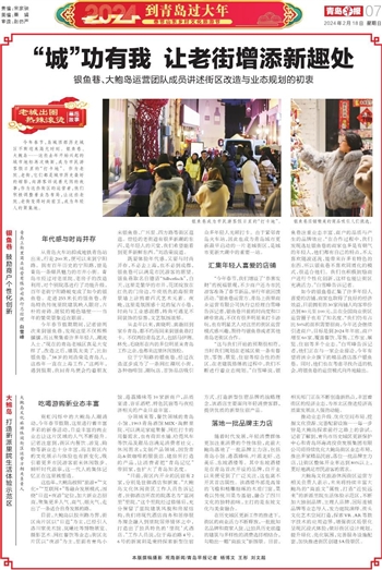 今年春节,岛城西部历史城区不断迎来高光时刻。银鱼巷、大鲍岛……这些去年开始兴起的城市地标再次焕新,成为市民游客假日里的“打卡地”。作为老院、老街,它们都是城市历史最好的缩影,向游客诉说着光阴的故事;作为这些街区的运营者,他们积极调整着业态布局,让这些老院、老街变得时尚前卫,成为年轻人的聚集地。