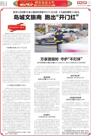 2月17日,记者从市交警支队获悉,春节期间,青岛交警共出动警力2.4万余人次、警车3687辆次,设置岗位2747处,启动春运执勤站11个,查处酒醉驾违法行为525起。