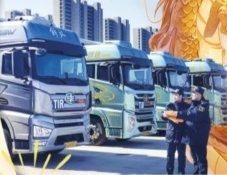 海关关员现场监管验放上合示范区TIR车辆。