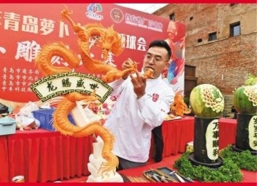 选手们在萝卜雕刻大赛上炫技。 通讯员 崔冬妮 摄
