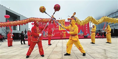 2月18日正值龙年新春复工首日,展演活动上,北宅街道五龙村舞龙队带来了精彩的舞龙节目,以龙马精神喜迎“开门红”。