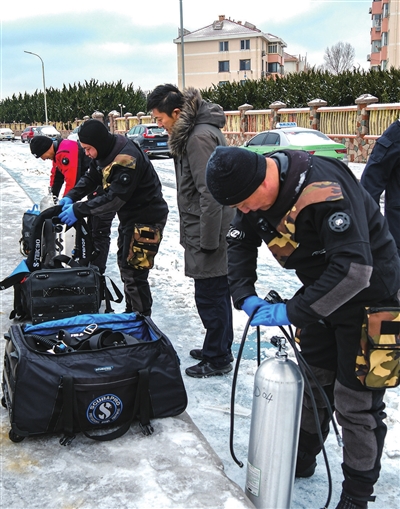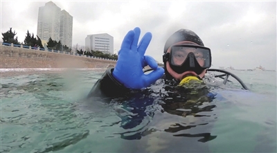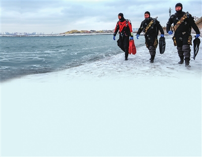 2月20日、21日,青岛迎来暴雪天气,气温骤降,近岸海域漂浮着些许不太光滑的浮冰,在浪花与浮冰之间,可以看到一群身穿黑色潜水服、背着氧气瓶的人依次跳入水中,转瞬不见,影视大片的既视感扑面而来。这群人是谁?他们在海里打捞什么?