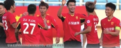 青岛红狮球员在比赛中庆祝进球。红狮俱乐部供图