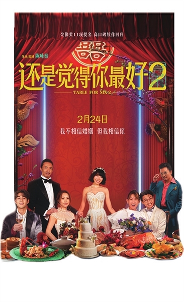 2月24日,喜剧电影《还是觉得你最好2》将在电影院陪观众过元宵节。2022年9月,由陈咏燊执导,黄子华、邓丽欣、张继聪、王菀之领衔主演的《还是觉得你最好》在全国影院上映,其幽默犀利的表达令人耳目一新,曾在豆瓣获得8.1分的好评,并一举拿下第41届香港电影金像奖11项提名。《还是觉得你最好2》将延续前作,讲述“恐婚”男女们阴差阳错进入了婚姻这个“爱的冒险局”,而“婚礼宾客”谢君豪、魏浚笙,以及胡枫、罗兰、米雪等多位TVB著名演员也将携手客串。
