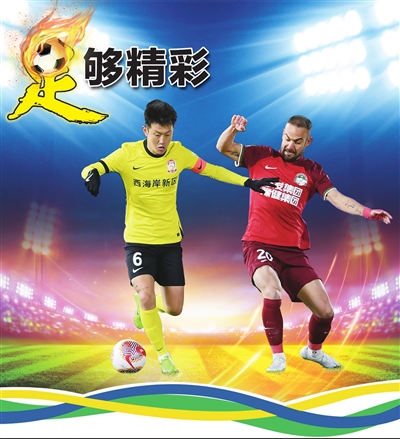 青岛西海岸队球员葛振(左)在进攻。 新华社发