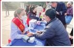 志愿者为市民测量血压。