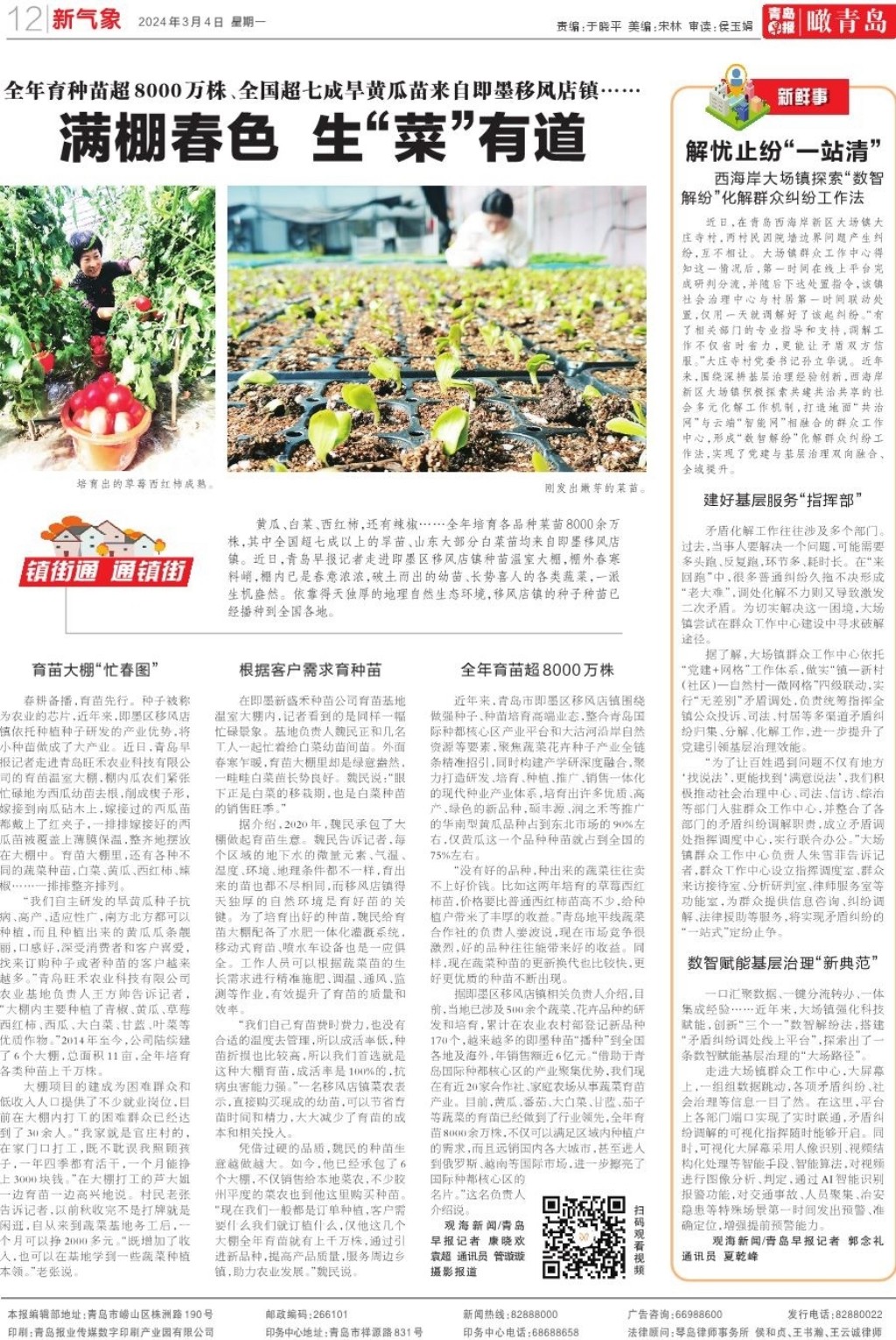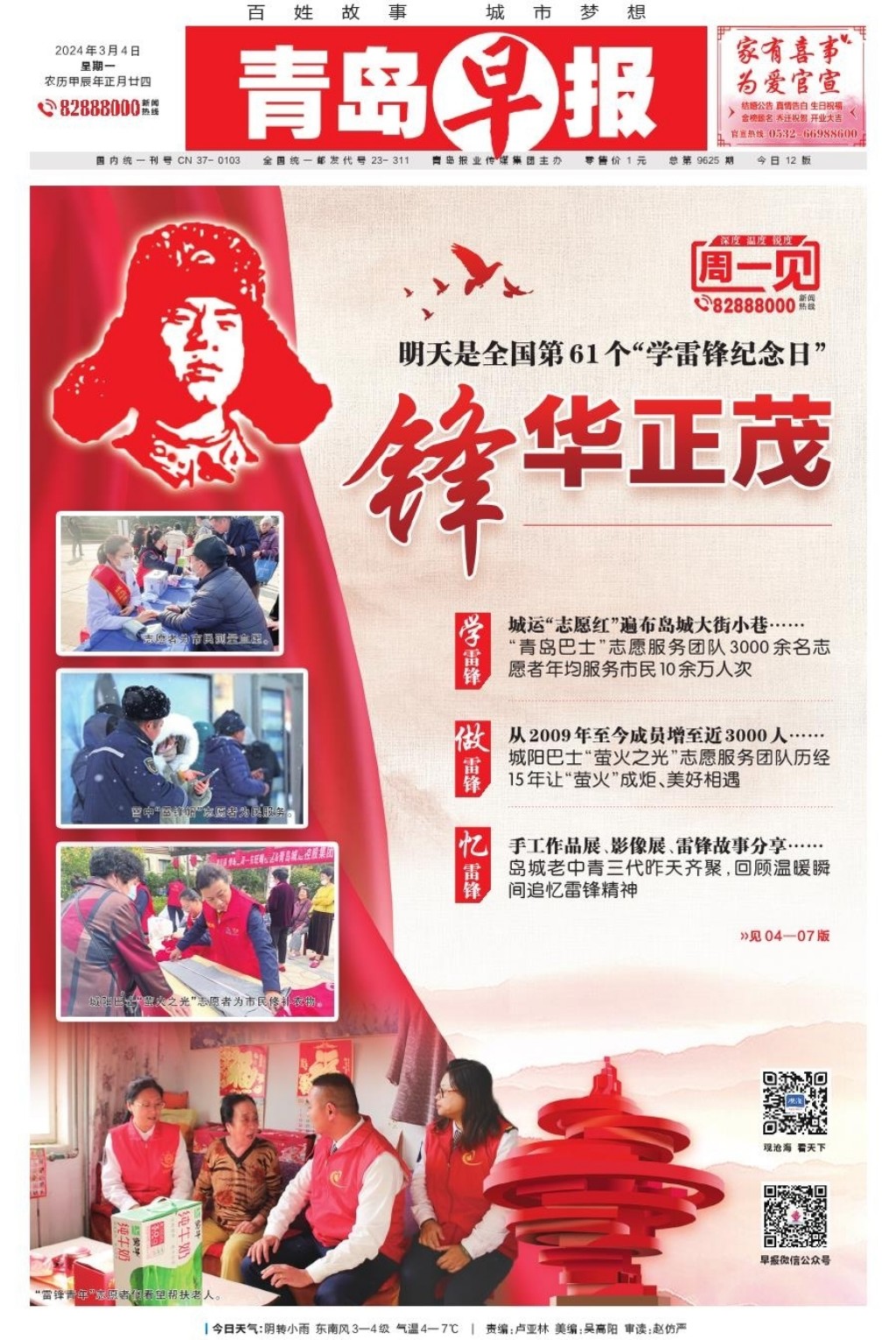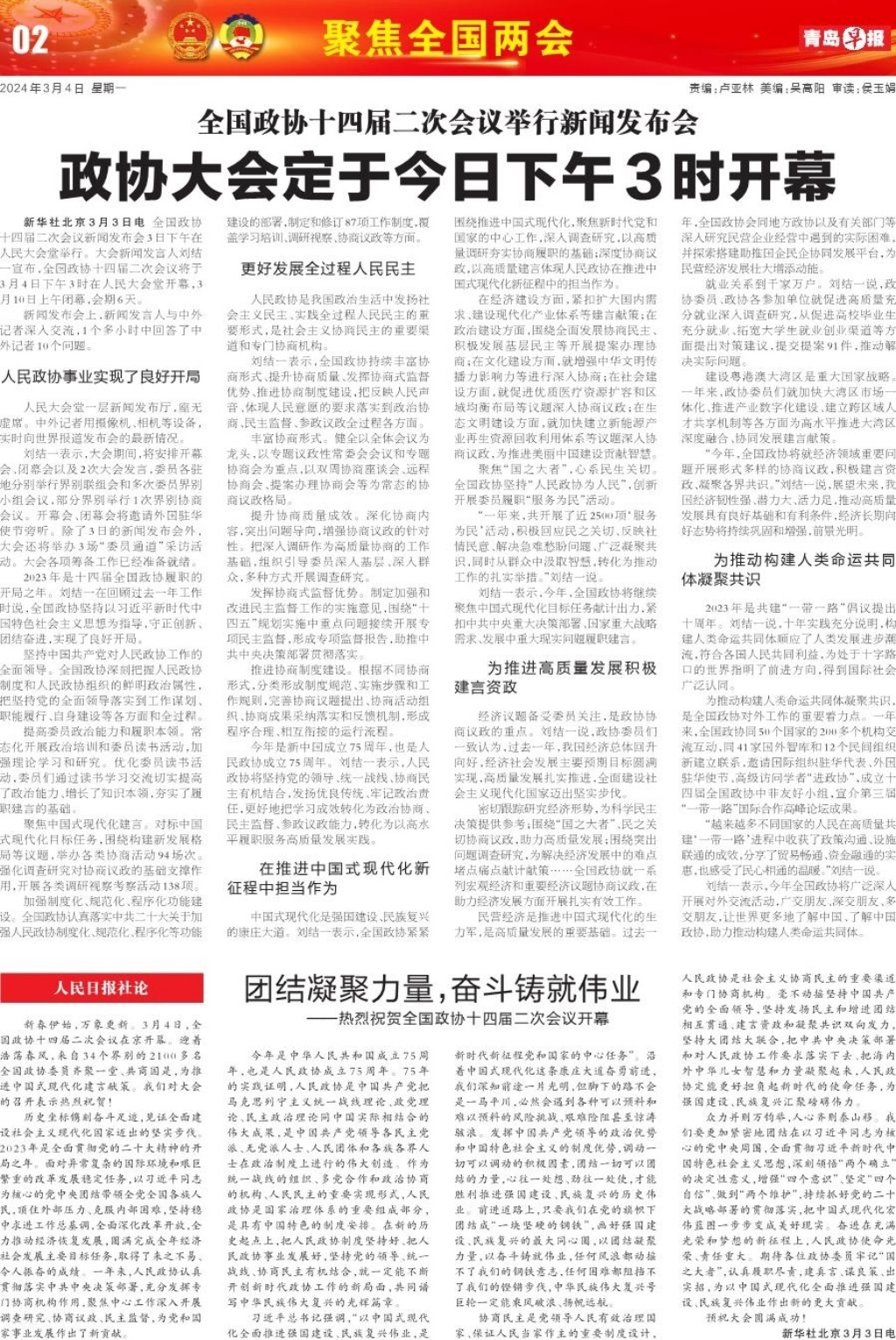 A01 头版 A02 聚焦全国两会 A03 今日看点 A04 周一见 A06 周一见 A07 一线探访 A08 都市圈 A09 身边事 A10 体育 A11 瞰青岛 A12 新气象