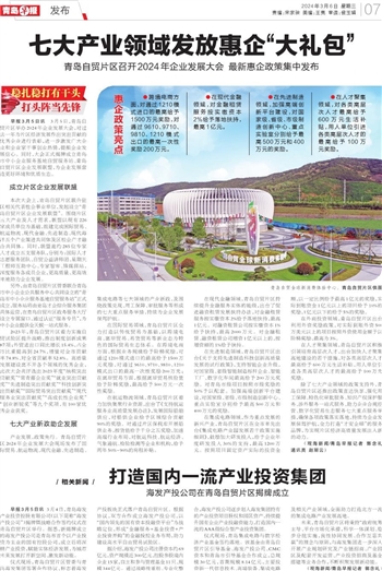 早报3月5日讯 3月4日,青岛海发产业投资控股有限公司(以下简称“海发产投公司”)揭牌暨战略合作签约仪式在青岛自贸片区举行。据悉,新揭牌成立的海发产投公司是青岛市首个以产业投资为主业的国有控股公司,成立后将深耕产业投资,赋能实体经济发展,为城市未来发展打开新空间、激发新动能。