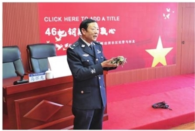 马怀龙向边检站民警宣讲雷锋精神。董家口边检站供图