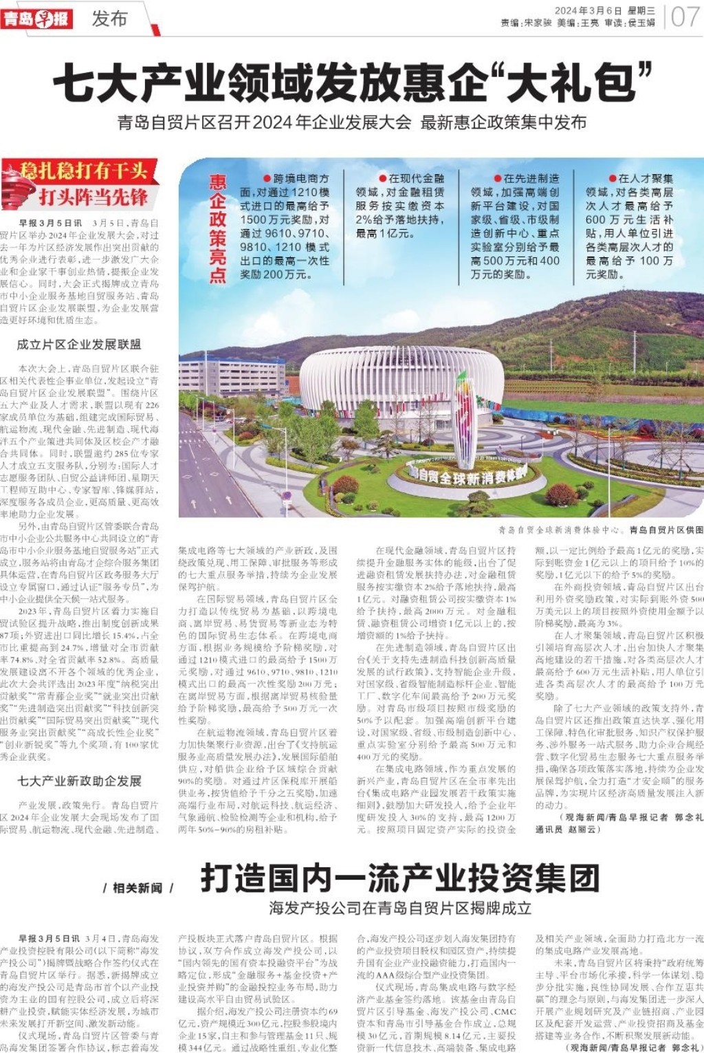 七大产业领域发放惠企“大礼包”