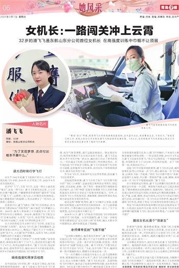青岛飞行部的领导和老师傅们对这位东航青岛女飞第一人的成长也始终关注着,轻易不太表扬飞行后生的老师傅们提到潘飞飞时,给出的评价都是:“小姑娘飞得不错!”