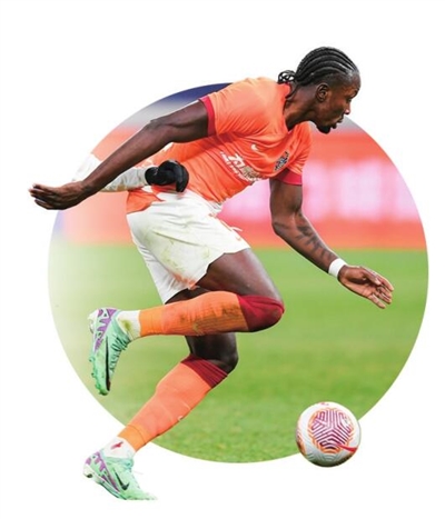 青岛海牛队球员博阿基耶在比赛中带球突破。 新华社发