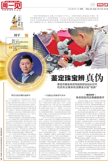 价格不菲的黄金珠宝,动辄上万元甚至几十万元,一旦购买到假货,将造成巨大损失。购买时要避免哪些“坑”?如何辨别真假?3月10日,记者采访了青岛市黄金珠宝饰品检验站站长刘平,听他讲述黄金珠宝的鉴定故事。刘平拥有丰富的实践经验和深厚的专业素养,多年来除了从事检验工作,还一直致力于向消费者普及黄金珠宝的购买和鉴定知识。