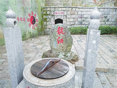 太平宫西院中巨石上有道裂缝,如果从上往下看,上面的一块宛如一条睡龙,因此称为“眠龙石”。传说这条“睡龙”本是天宫里专管行云布雨的玉龙,它有两个特点:一是力大无比,二是嗜酒如命。有年三月初三王母娘娘做寿,让它将三大缸重逾千斤的美酒运到蟠桃会上招待众仙。玉龙知道天规严厉,面对眼前的佳酿,即使垂涎欲滴也不敢轻举妄动。可是酒的香气太浓了,等搬运到第三缸时,玉龙实在抵挡不住诱惑,便忍不住喝了一口。谁知尝到滋味后便欲罢不能,很快将一缸美酒喝得见了底,结果一醉不起,被王母娘娘贬到这里看门护院。由于酒的后劲儿太大,这条玉龙至今仍昏睡不醒。从它嘴角流出来的口涎化作这眼“龙涎泉”,被誉为“神水仙液”。大旱不涸,大涝不溢,酿酒泡茶无与伦比,为崂山名泉之一。