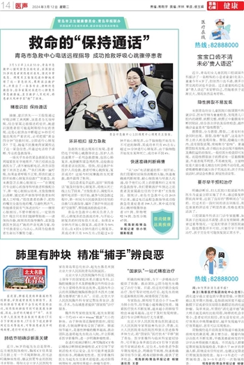 北京大学人民医院青岛医院通过北大人民医院专家常驻青岛坐诊、带教,北大人民医院青岛医院医师到北京进修等多种方式,将“国家队”医疗技术“平移”到了青岛。医学影像科与临床科室密切协作,可开展全身多部位的CT引导下的肺结节穿刺活检术、定位术,为给患者争取早期发现机会,明确结节病理,快速准确探寻结节位置,精准切除肿瘤,提供了更多机会。观海新闻/青岛早报记者 杨健 通讯员 王豪