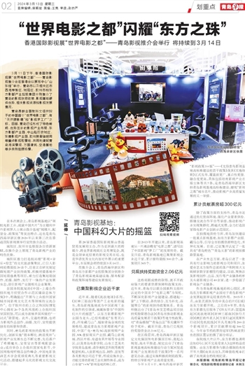 在本次展会上,青岛影视基地以“领航电影工业,成就中国大片”为主题向中外影视界人士展示推介基地“规模大、配套全、政策优”等突出特点,这也是青岛西海岸新区继2020年以来第三次在香港国际影视展举行宣传推介活动。