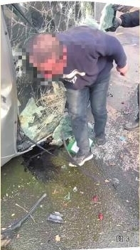 当三人跑到事故车辆前查看时,发现车内有一名男司机被困住,正无助地拍打着车窗求救。“师傅,你感觉怎么样?有没有受伤?”隋向坤一边询问被困者的伤情,一边用力想把车门拉开,但车门受损严重,无法打开。“当时司机的神情有些发蒙,脸上有血迹,说自己被卡住动不了了。”隋向坤说。为了防止给被困者造成二次伤害,隋向坤和同伴并没有急着盲目救人,而是在车旁先与被困司机沟通一番。“师傅,你身上有没有哪里不舒服?”听到询问,司机摇摇头,表示自己目前情况还行。经过观察与沟通,三人确认了司机身体状况并无不适,决定破窗救人。