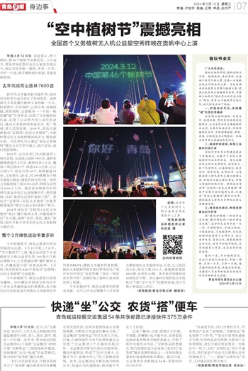 今年的植树节,绿色志愿者们将有更强的仪式感。3月12日晚上7点半,“空中植树节”上演,推出全国首个义务植树无人机公益星空秀,500架无人机在奥帆中心上空震撼诠释“履行植树义务,共建美丽中国”的青岛故事。3月底,我市将举办2024年青岛市“互联网+全民义务植树”公益盛典。