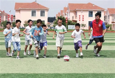 “足球城”随处可见孩子们在踢球。