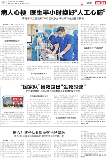 宝宝脱离了危险,妈妈仍面临着考验。吴女士产后出现弥散性血管内凝血,即产后大出血,医护团队立刻有条不紊地开展抢救。终于,经过医护团队的努力,产妇的血止住了,血压也随之回升,吴女士转危为安。术后,在医护人员的精心照料下,新生儿的生命体征和产妇的各项检查指标平稳。这对母女出院时,全家人都来到医院表达感谢,吴女士感激地说:“是北京大学人民医院青岛医院的医护人员救了我和孩子。”