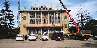 剧组在南墅镇老石墨矿区职工俱乐部取景拍摄。