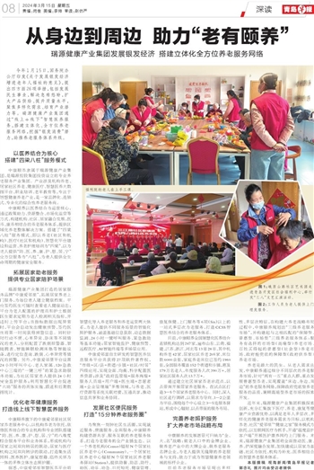 今年1月15日,国务院办公厅印发《关于发展银发经济增进老年人福祉的意见》,提出四方面26项举措,包括发展民生事业,解决急难愁盼,扩大产品供给、提升质量水平,聚焦多样化需求、培育产业潜力等。瑞源健康产业集团通过“线上+线下”智慧医养服务,搭建立体化、全方位养老服务网络,挖掘“银发消费”潜力,助推养老服务体系升级。