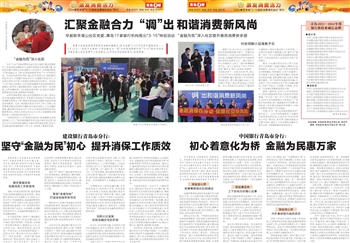 坚守“金融为民”本色,书写“人民消保”新篇。青岛中行将始终坚持“以人民为中心”价值导向,践行金融工作政治性、人民性,将诚实守信、以义取利、稳健审慎、守正创新、依法合规理念嵌入金融产品设计、营销宣传等经营管理各环节,用心用力用情解决人民群众急难愁盼问题,切实增强人民群众金融服务的便利性、可得性和获得感,为营造和谐健康金融环境贡献中行力量。