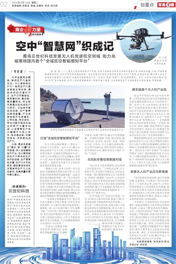 经过多年来的业务沉淀与技术积累,云世纪科技已经成为国内能够独立实现智慧低空数字化云平台的技术厂商。去年11月,山东发布《山东省无人机产业高质量发展实施方案(2023—2025年)(征求意见稿)》,规划到2025年培育10家左右产值过亿元龙头企业,培育100家左右“创新型中小企业”“科技型中小企业”等优质企业。“一系列政策将为云世纪科技带来利好。”王亮说,相比北京、深圳、成都、西安等航空产业较为发达的城市,青岛在无人机制造方面尚处于蓄力发展期,但是应用场景可以成为拉动无人机产业发展的突破口。