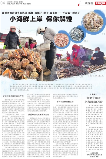 “这几天,海捕蛎虾、面条鱼也集中上岸。”渔民介绍,现在蛎虾价格要贵一点,每斤15元到20元不等,面条鱼每斤在10元以内。正在海鲜市场采购的市民王女士介绍,春天买点蛎虾回家做虾仁汤包、饺子,是不少青岛主妇的拿手绝活。在各大码头上,渔民趁着大退潮采集的海青菜,也成为市民春天的“最爱”。