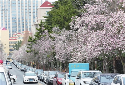 樱花,是市南区的“春日使者”。4月春风与樱花缠绵,一树树的绯红潮韵,形成一片粉红的海洋,给市民带来美的享受。樱花花期为4月中上旬至5月上旬。赏花地为中山公园樱花大道、三明南路、中国海洋大学鱼山校区、八大关居庸关路附近等。中山公园里,还有风姿绰约的大片郁金香构成绝美花境,人在景中,花在眼中。一株株郁金香随风摇曳,奏出生机勃勃的“春日圆舞曲”,郁金香花期为4月上旬至5月中旬。