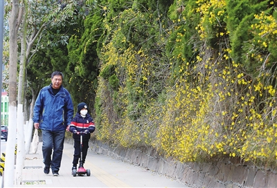 “迎得春来非自足,百花千卉共芬芳。”迎春花在百花之中开花最早,花色端庄秀丽,是市南区十分常见的早春花木。当许多花卉还在沉睡之际,迎春藤一丛丛、一簇簇地分散于公园之中,给人们带来第一缕春光。迎春花花期为3月上旬至4月上旬。赏花地为鲁迅公园对面护坡处、信号山公园、青岛动物园、榉林公园等。随迎春花同期开放的,还有“独天下而春”的梅花。梅花的清冷香气,比春风更早拂过鼻尖。绿萼梅、杏梅、宫粉梅是常见的梅花品种,早春时节,它们会随着暖风逐渐舒展开放。梅花花期为3月至4月上旬。赏花地为中山公园梅花园、百花苑等。