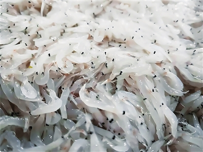 据悉,阡里毛虾分为大银环、二银环和臛虾3个品种。与一般毛虾不同,阡里毛虾形体细小,身长仅有10—15毫米,宽2—3毫米,其皮薄如蝉翼,虾毛细小,尾部有4个针尖大小的黑点。阡里毛虾一般用来制作虾皮和虾酱,味道独特,入口鲜美,久嚼回味悠长,营养价值高,是当地的珍贵特产,迄今已有三四百年历史。据悉,制作1斤干虾皮需要数万只阡里毛虾。