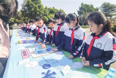 学生们在《自来水的千里之旅》互动绘本上进行涂色绘画。
