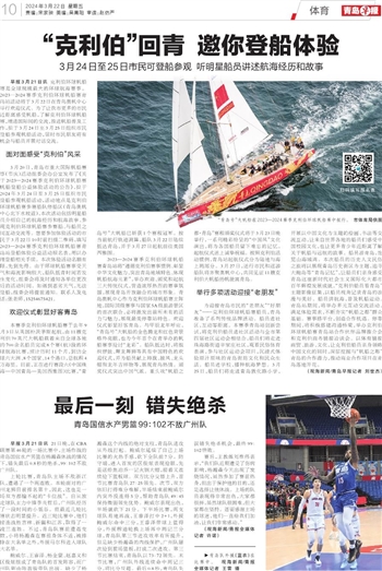 早报3月21日讯 21日晚,在CBA联赛第46轮的一场比赛中,主场作战的青岛国信水产男篮在杨瀚森休战的情况下,错失最后0.8秒的绝杀,99∶102不敌广州队。