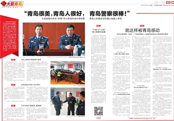 “我们离开派出所已经是次日凌晨4点多了,我和我爱人特别感动,好客山东名不虚传,青岛警察太好了,本来是过年期间赶着假期来青岛游玩,旅程刚开始在飞机上就这么不顺利,非常影响心情,结果遇到了这么一群认真负责的好警察,我真心觉得警察太不容易了,这是我见到最好的警察。在离开青岛后的30多天,没有一天忘怀,在此我想通过平台对两位警官说一声谢谢!”刘先生在人民网留言区这样写道。