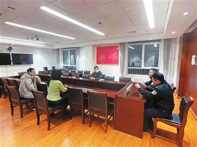 宋志伟穿梭于双方之间,这边劝说一会又到那边调解一会,提醒双方换位思考;鲁文杰则陪着刘先生聊天,从“理解”到“宽容”,讲了好多。最终,双方在民警调解下“握手言和”。