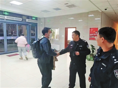 刘先生向两位民警告别。青岛公安供图