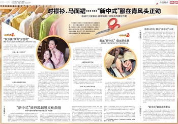 一位店主介绍,大约从去年夏天开始,来购买“新中式”服装的人明显变多了,特别到了年后热度更是持续走高,顾客群体分布广泛,从小朋友到老人都愿意尝试一下。店里随之增加了进货比例,现在店里的“新中式”服装要占到一半。“除了本地的老顾客经常光顾以外,还经常收到来自全国各地的订单,下一步我们计划做一家‘新中式’专营实体店。”这位店主说。