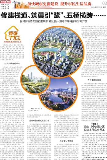 3月23日上午,早报记者探访得知,张村河生态公园核心段一期工程正在全力推进中,预计在今年年底部分对外开放。张村河承载着很多青岛人的记忆,此次生态公园建设除了增加众多特色节点景观外,还活化利用一些老景观,让市民记住乡愁,尤其是为李家下庄的五棵雪松开辟了一处“记忆广场”,这个细节让附近居民纷纷点赞。