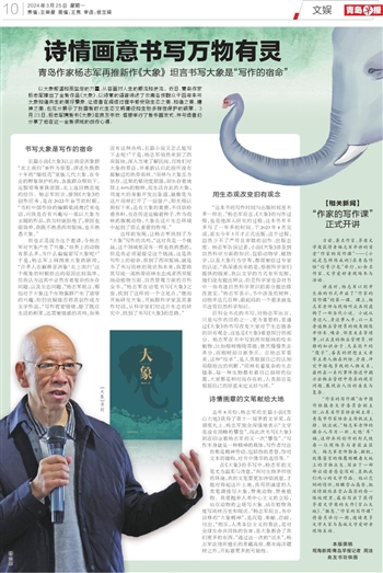 以大象般温和而坚定的力量,从容面对人生的顺流和逆流。近日,青岛作家杨志军捧出了全新作品《大象》,以诗意的语言讲述了云南各族群众千百年来与大象和谐共生的美好景象,让读者在阅读过程中感受到生态之美、和谐之美、精神之美,也充分展示了我国新时代生态文明建设和生物多样性保护的硕果。3月23日,杨志军携新书《大象》在良友书坊·塔楼举行了新书首发式,并与读者们分享了他在这一全新领域的创作心得。