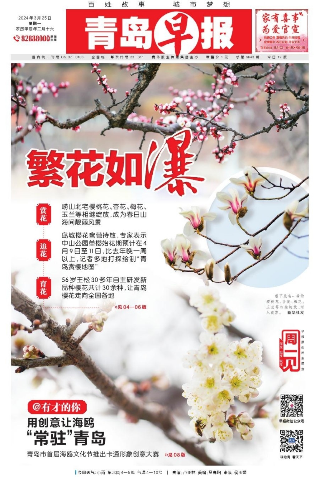 A01 头版 A02 加快城市更新建设 提升市民生活品质 A03 加快城市更新建设 提升市民生活品质 A04 周一见 A06 周一见 A07 都市圈 A08 身边事 A09 身边事 A10 文娱 A11 瞰青岛 A12 新气象