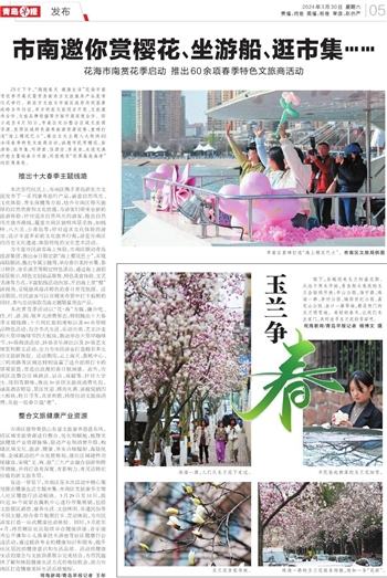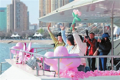 为丰富市民游客海上体验,市南区联动青岛旅游集团,推出春日限定款“海上樱花巴士”,实现海陆联动,推出专属主题周,举办春日美好市集、春日特饮、音乐演艺等限定特色活动,通过海上游船场景展示、特色文创商品展售、特色美食体验、文艺表演等方式,丰富航线活动内容,开启海上赏“樱”新视角,呈现独具海洋特色的春日赏花氛围。活动期间,市民游客可以在精美布景中打卡拍照的同时,参与互动获取花海主题限量周边产品。