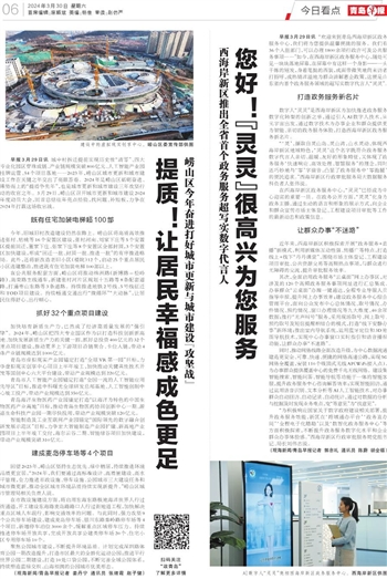 早报3月29日讯 “欢迎来到青岛西海岸新区政务服务中心,我们将为您提供温馨便捷的服务。我们有36个入驻部门,可以办理1800余项行政许可及公共服务事项……”如今,在西海岸新区政务服务中心,随处可见一块块落地屏幕,在屏幕中有这样一个身影——一头干练的短发,身着笔挺的西装,或面带微笑地向来访者打招呼,或热情洋溢地为群众讲解惠企政策,这便是山东省内首个政务服务领域的超写实数字代言人“灵灵”。