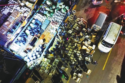 昨日凌晨,商贩在沙子口码头抢购鲅鱼。