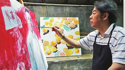 田乐军在绘制王尽美烈士的画像。本组照片均由青岛市革命烈士纪念馆提供